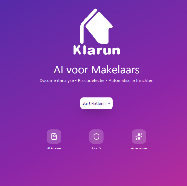 Steeds meer makelaarskantoren worstelen met toenemende administratieve lasten. Terwijl je je wilt focussen op klanten en het sluiten van deals, gaat er veel tijd verloren aan repetitieve taken. Doe mee aan de Klarun pilot voor makelaars kantoren en ervaar hoe onze slimme automatisering dit probleem oplost.